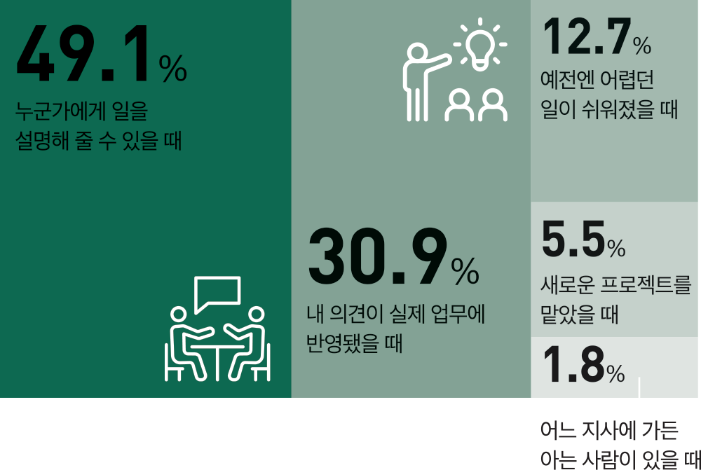 앞에 나서는 걸 정말 무서워 하던 제가 어느 순간 부서활동 MC를 맡고 있더라고요. 그때 ‘아, 나도 많이 달라졌구나’ 싶었어요.