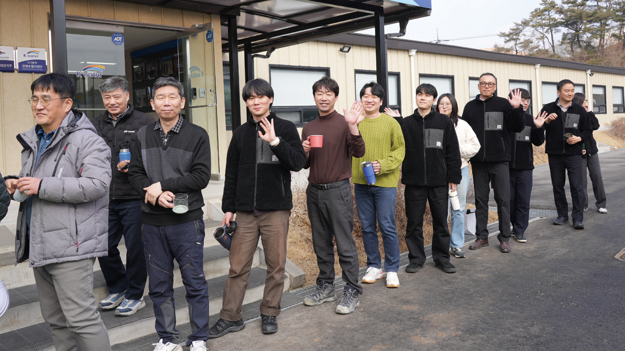 그래서일까. 소양강댐 일대에서는 우리나라 최초의 수열에너지 집적단지 조성사업이 한창이다. 앞으로 이곳에는 데이터센터와 스마트팜 첨단농업단지, 친환경 주거단지까지 들어설 예정. 지금 현장에는 거대한 크레인과 불도저, 굴삭기가 쉼 없이 움직이며 부지 조성과 기반 공사를 진행 중이다. 흙을 다지고 배수관로를 정비하는 분주한 현장의 중심에는 강원수열사업단이 있다. 2023년에 신설된 이 부서는 ‘강원 수열에너지 융복합 클러스터 조성사업(이하 조성사업)’을 안정적으로 이끄는 든든한 컨트롤 타워다.