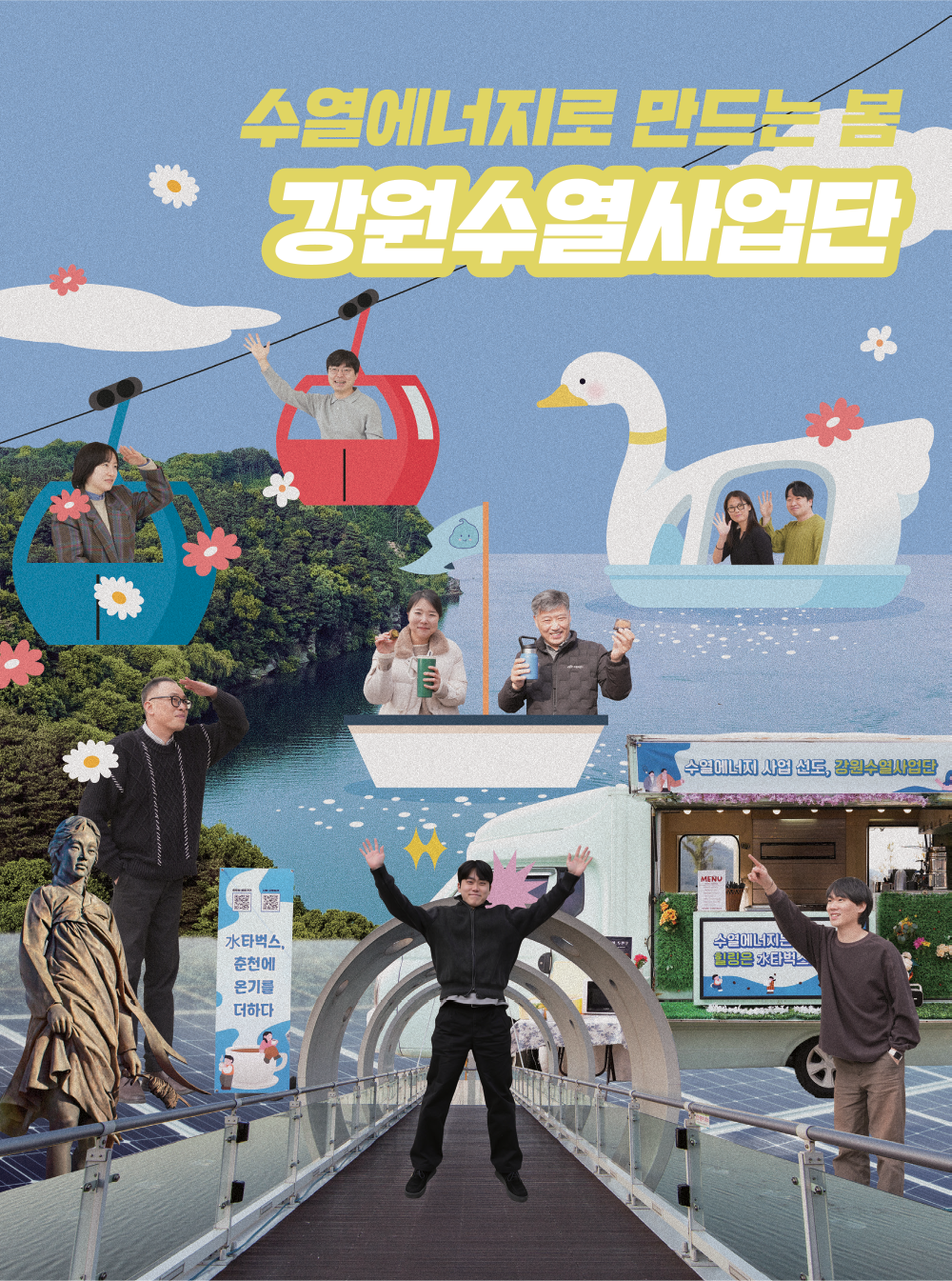 그 대담한 도전이 지금 소양강댐에서 펼쳐지고 있다. 물로 미래의 에너지를 만드는 사람들, 강원수열사업단의 이야기다. 그 현장에 수타벅스가 달콤한 응원을 싣고 찾아왔다.