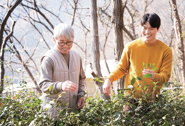 하동 차는 자연과 사람이 함께 키운다. 자연에서 자라는 ‘야생차’지만, 찻잎을 따는 일만큼은 사람의 손을 거친다. 와인에 ‘떼루아’가 있듯 차에도 땅의 기억이 배어 있다. 경사지고 돌이 많은 차밭은 물 빠짐이 좋고, 수많은 나무 그늘은 여름엔 차광, 겨울엔 보온이 된다. 자연이 차밭의 지붕이자 담장이 되는 셈이다. 그렇게 혹독한 겨울을 견딘 찻잎일수록 깊은 맛을 낸다.