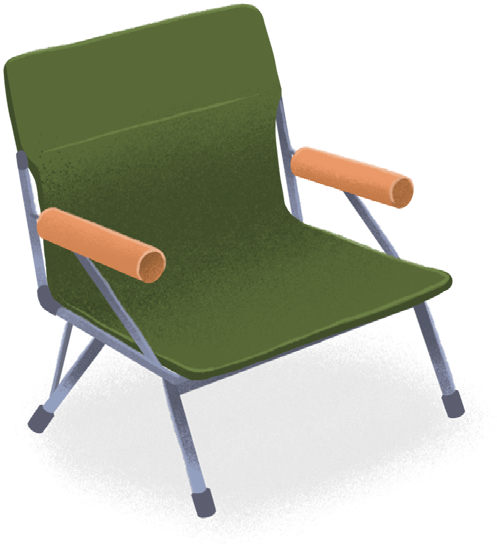 눕방 부럽지 않은 안락함 캠핑 의자바닥에만 앉아 있어 엉덩이가 배긴다면 캠핑 의자로 편안함을 더해보자. 푹신한 등받이에 몸을 기대고 물멍, 풀멍, 산멍을 하다 보면 시간 가는 줄 모른다. 요즘은 컵홀더가 달린 편리한 의자부터 깃털처럼 가벼운 초경량 의자까지 선택지도 다양하다. 특히 경량 의자는 접으면 작아지고, 무게도 가벼워 어디든 들고 다니기 편해 피크닉이나 야외 나들이에 제격이다.